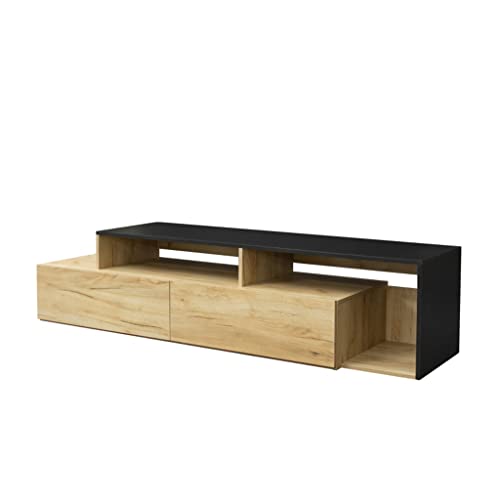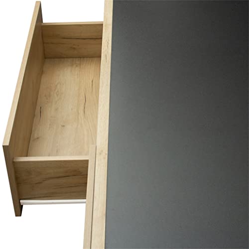 Living room furniture, high and low TV station cabinet with 2 drawers, medium density fiberboard, black+oak