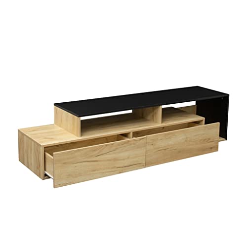 Living Room Furniture High and Low TV Station Cabinet with 2 Drawers Oak Frame Sturdy and Durable TV Cabinet (Color : A Size : As Shown)