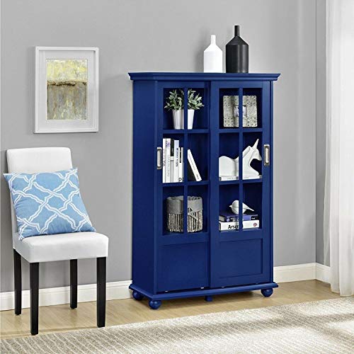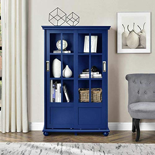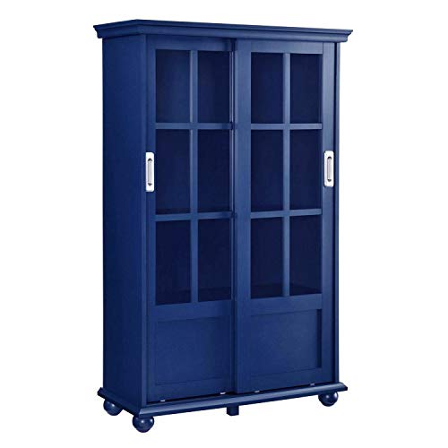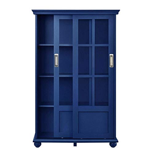 Navy Blue 4 Shelves Wooden Barrister Bookcase Storage Cabinet Glass Door Display Office Shelf Shelving Bookshelf Rack Furniture Home Wood MDF Particle Board 51" H x 31.75" W 13" D - 2300WaysToShop