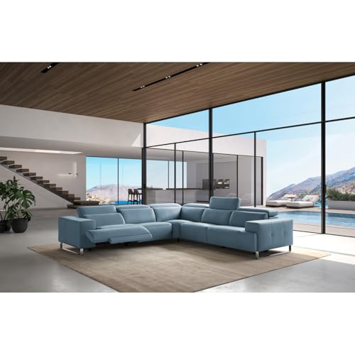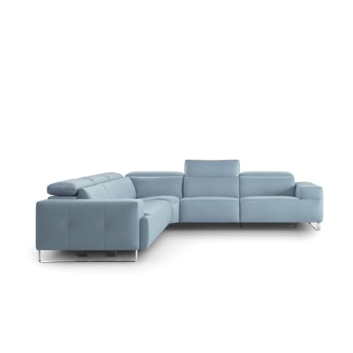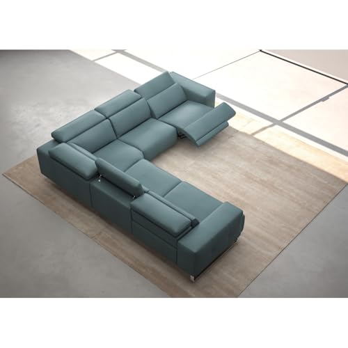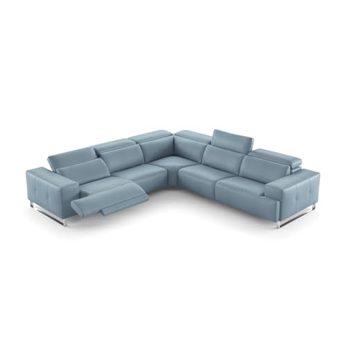 Specification: Nordic Sectional Sofa with Recliners – Blue Italian Leather, Silver Stainless Steel Base – Modern Living Room Furniture