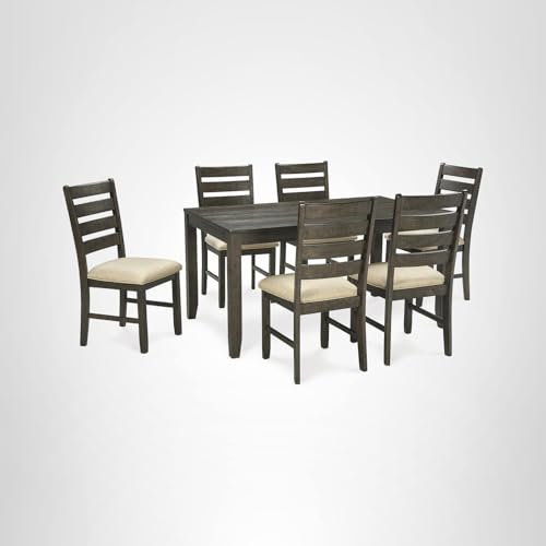 Specification: Signature Design by Ashley Rokane 7-Piece Dining Room Table Set with 6 Upholstered Chairs – Brown Wood 20″ Rectangular Table & Chair Set for Kitchen Dining Room
