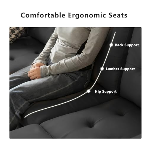 Durable & Sturdy: With a solid wood frame and metal legs, this sofa boasts a stable structure and strong load-bearing capacity.It can securely support and resists deformation over time, making it a durable choice among sectional couches for living room.