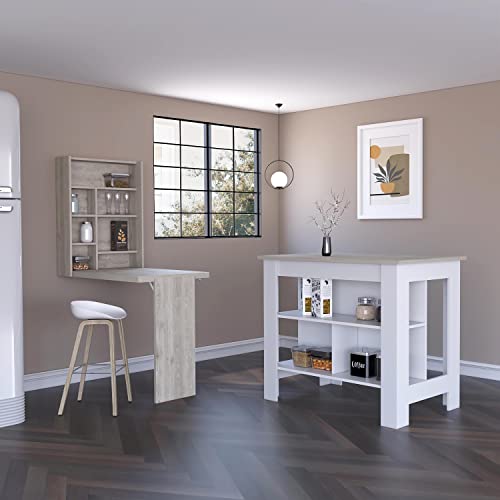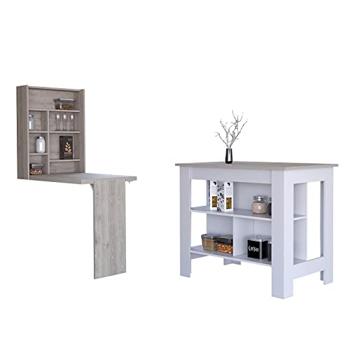 This fantastic set is crafted from high-quality light gray manufactured wood, making it a durable and chic addition to any kitchen. The sleek design of the Winnipeg Kitchen Set is perfect for small spaces, as it fits easily into any room. Whether you’re just starting in your first apartment or looking to upgrade your current kitchen, this set is a must-have! With its elegant design and versatile functionality, the Winnipeg Kitchen Set will become your new favorite kitchen accessory. The Bay Area Pantry is a beautifully designed storage solution for any kitchen. It comes with a double-door cabinet on the top (11,5 “W X 12 “H), perfect for keeping all of your essentials tidy and organized. The large drawer (5,2 “H X 23,2 “W) is ideal for storing your kitchen utensils and gadgets, while the double-door base cabinet provides ample internal storage space. The pantry also features two external shelves, suitable for your microwave or other appliances. This truly innovative and one-of-a-kind table is perfect for anyone who loves cooking or entertaining. With its unique ergonomic design, the Dalton Foldable Table easily attaches to any wall in your home and expands to become a large table (12,3″ W X 30” H). It features multiple shelves ideal for storing your kitchen items or even glasses. When not in use, the Dalton Foldable Table can be easily folded up and stored away, making it the perfect space-saving solution for any home. Dimensions: Furniture 1, Bay Area Pantry Width: 23,6” Height: 66,5” Depth: 13,7” Furniture 2, Dalton Foldable Table Width: 23,6” Height: 31,4” Depth: 6,8” Furniture Type: Ready to assemble (full assembly required). Certifications: CARB phase II compliant – TSCA Title VI Compliant. Warranty: 1-year warranty coverage in wooden parts- 1-year warranty coverage in hardware pieces since its manufacturing date is found in the lot number printed in the product box.