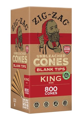 ZIG-ZAG Pre-Rolled Unbleached King Size Cones (800-Pack) These Pre-Rolled Cones are expertly crafted from Natural Fibers, ensuring a clean, smooth burn that enhances the flavor of your favorite blends.